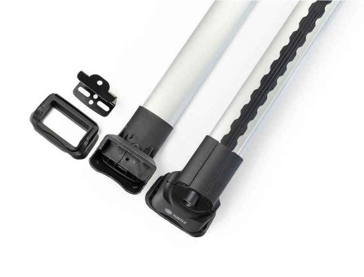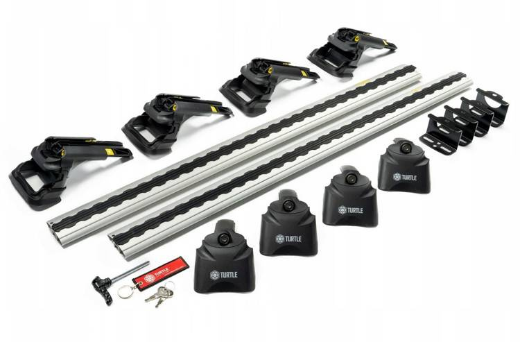 TURTLE AIR III е много лек алуминиев базов багажник. Аеродинамичната форма, ниското ниво на шум при шофиране и високото качество на изработка са основните предимства на този модел. Страхотната практичност на монтажа ви позволява да инсталирате много аксесоари едновременно с помощта на скоба или лесни за използване щифтове.