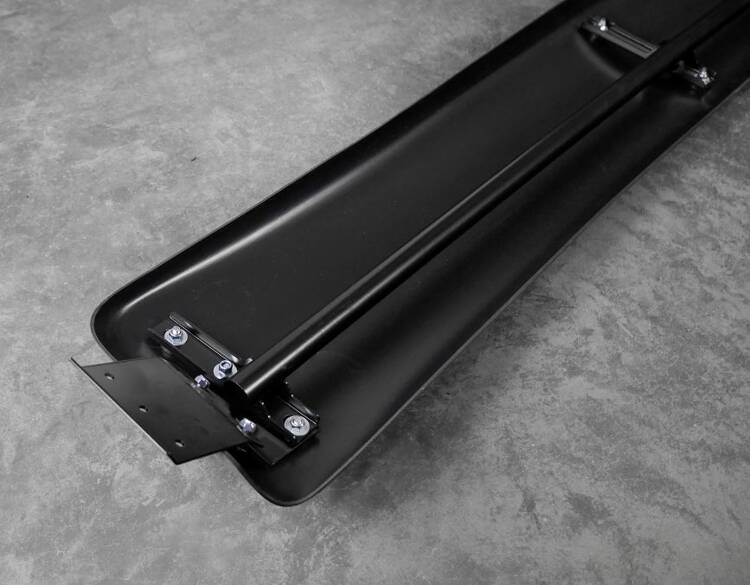 Комплектът включва монтажни елементи от поцинкована стомана, прахово боядисана в черно.
