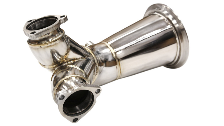Низходяща тръба от TurboWorks , изработена от 100% неръждаема стомана.