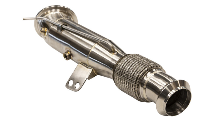 Низходяща тръба от TurboWorks , изработена от 100% неръждаема стомана.